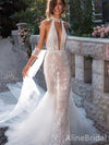 Elegant Halter V-neck Backless Mermaid Lace Wedding Dresses,WD3066