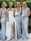 Simple V-neck Spaghetti Strap Mermaid Long Bridesmaid Dress,PD3224