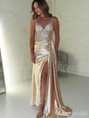 Sparkly Champagne V-neck Side Slit Long Prom Dress, Evening Dress, PD37698