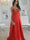 Long Two Pieces Halter A-line Red With Side Slit Charming Evening Prom Gown Dress. PD0206