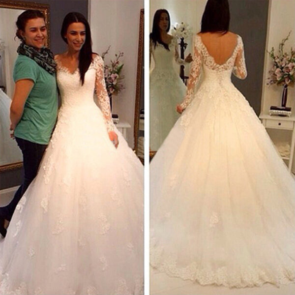 Charming V-Neck Long Sleeve Lace Wedding Party Dresses, Gorgeous Bridal Gown, WD0032